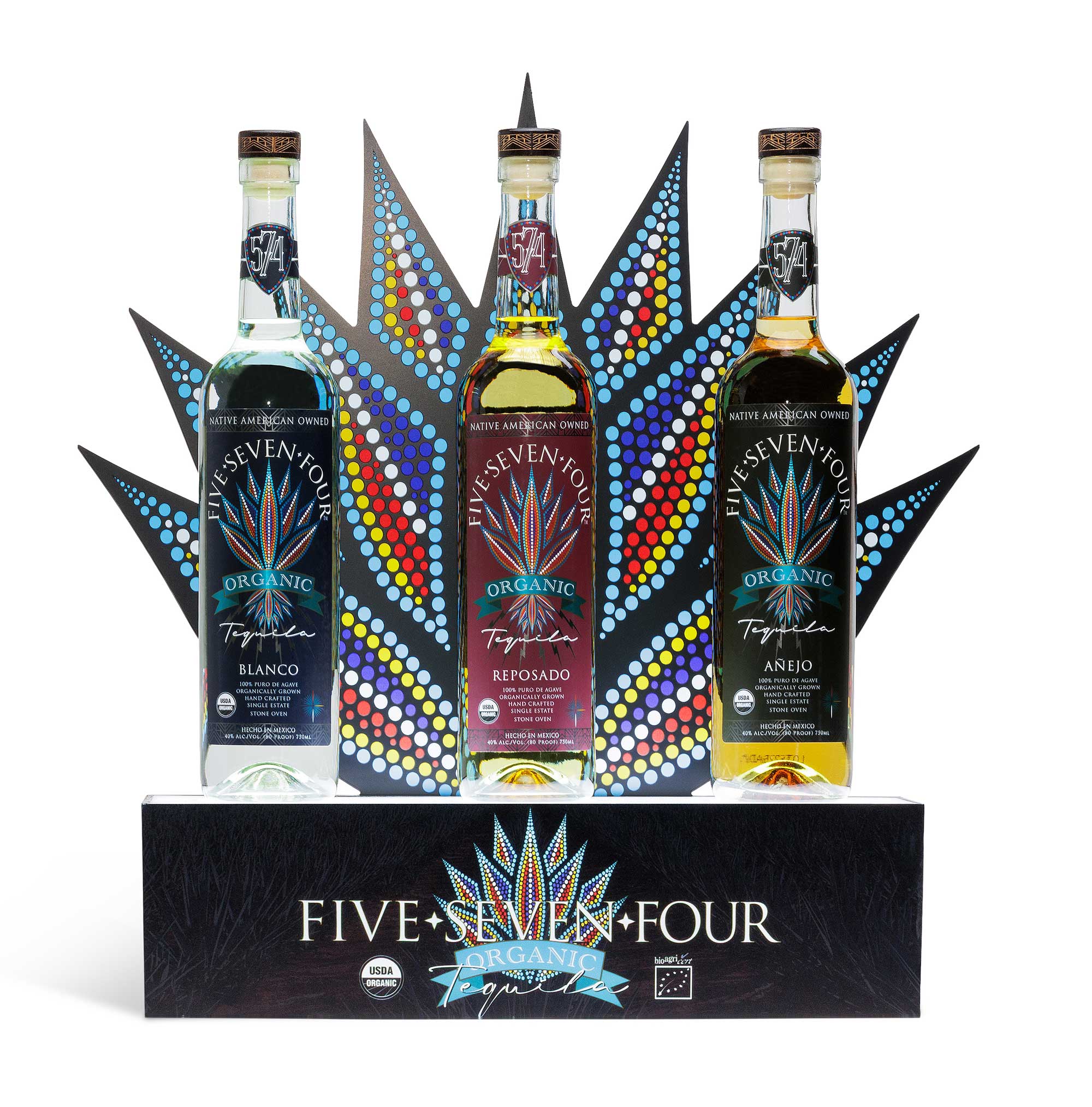Our custom 574 Tequila LED back-bar bottle display featuring original beaded agave artwork creates immediate visual impact that elevates your bar presentation while driving sales. The design showcases Native artistry and craftsmanship, complementing the sophistication of your properties while remaining compact enough not to dominate your back-bar space.